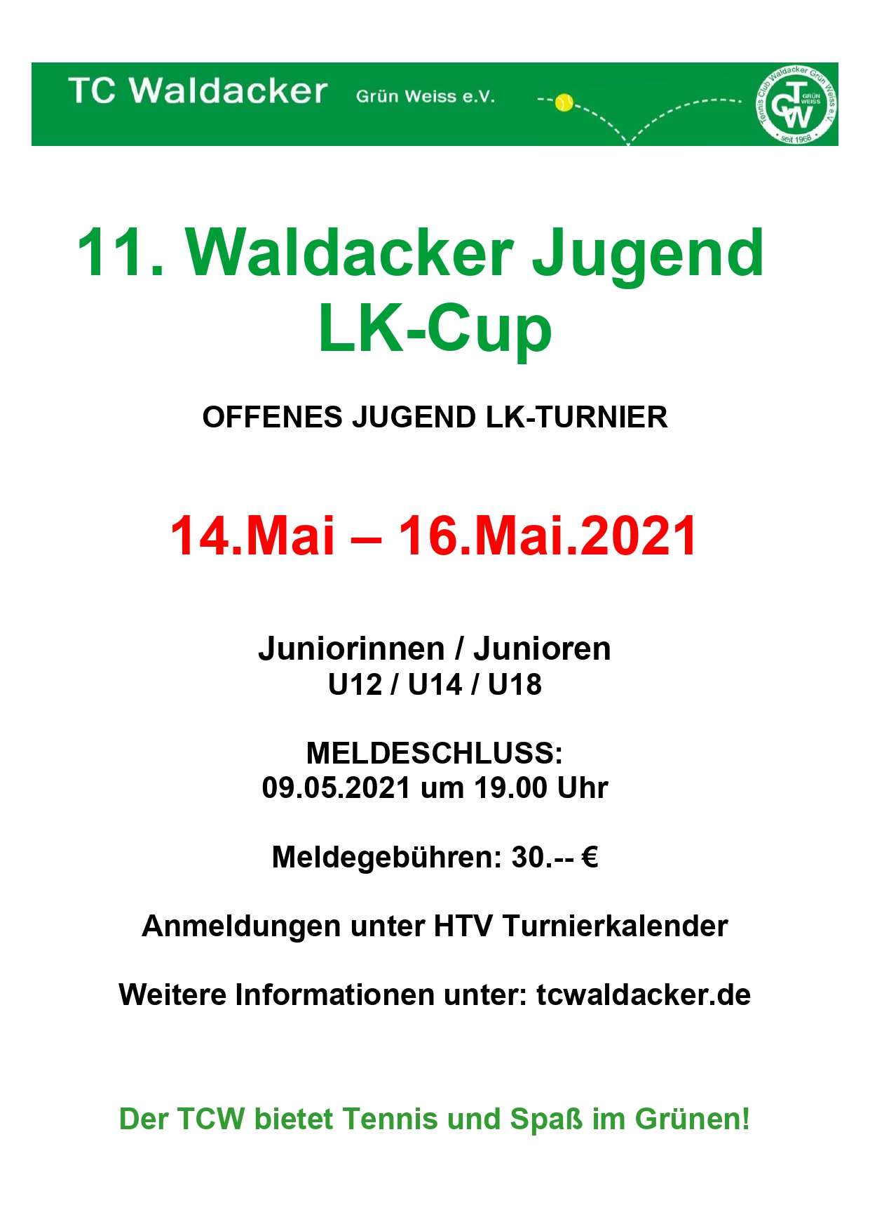 • TCW Open LK-Turnier Einzel, Doppel und Mixed