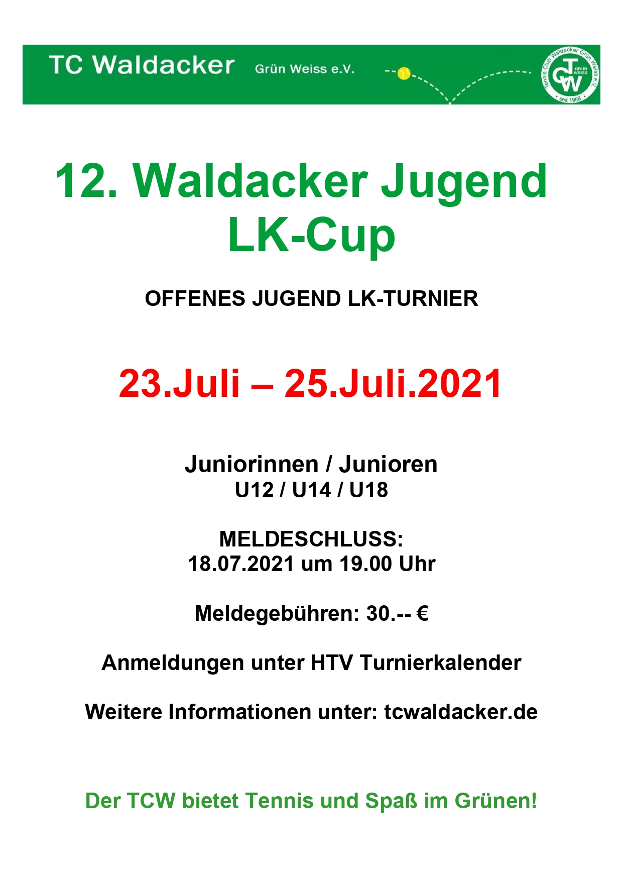 12. Waldacker Jugend LK-Cup Posted on4. März 202111. März 2021AutorUsamah Tahhan Hier gehts zur Online-Anmeldung Turnierausschreibung Drucken