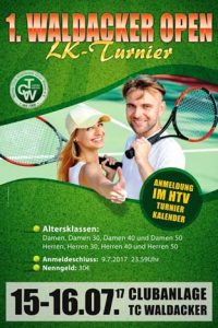 Die Erfolge der LK-Cups der Jugend ermutigen den TC Waldacker, in 2017 auch ein LK-Turnier für Erwachsene auszurichten. Es wird vom 15. bis 16. Juli 2017 stattfinden. Das Orgateam um Jugendwartin Stephanie Russ hofft auf viele Teilnehmer, tolle Turniertage und gutes Wetter.