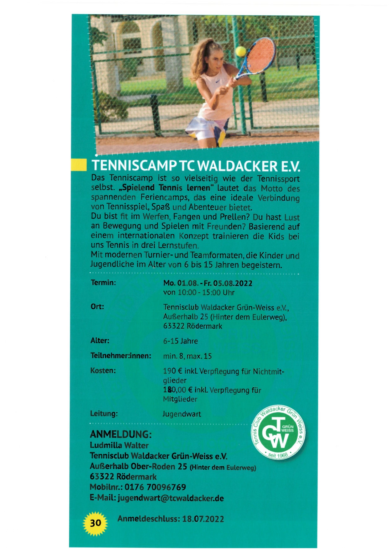 TC Waldacker Junior – Tenniscamp 2022